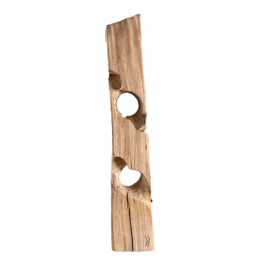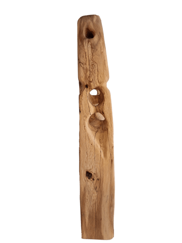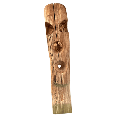 Avec son petit œil tout en haut, il m'a fait penser à un cyclope, 'kaour' en breton. J'aime aussi le côté penché qui lui donne un caractère instable. Va-t-il prendre vie, ou va-t-il rester de bois ?!