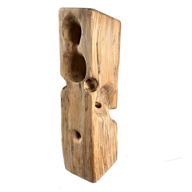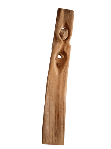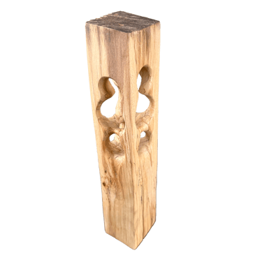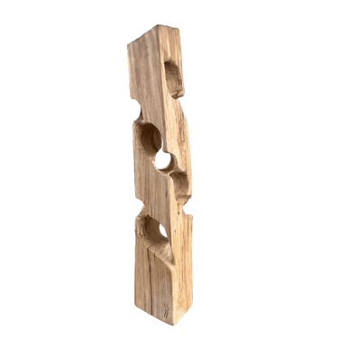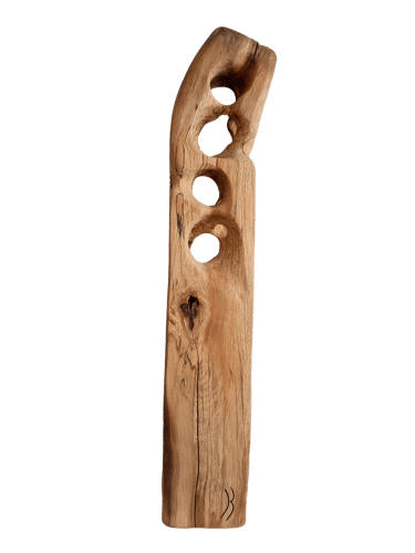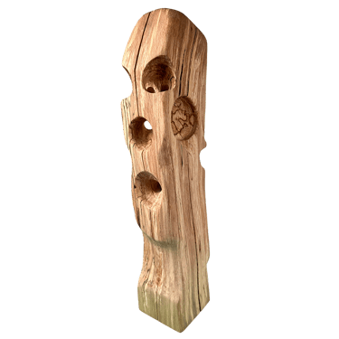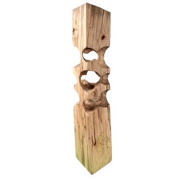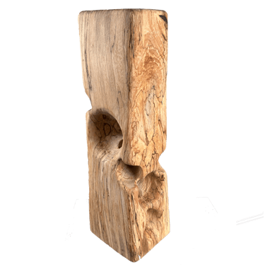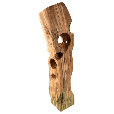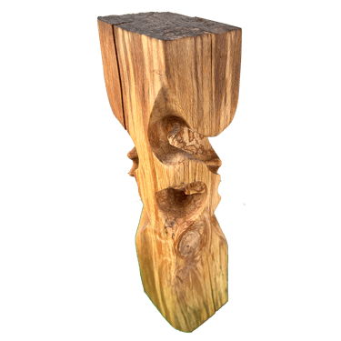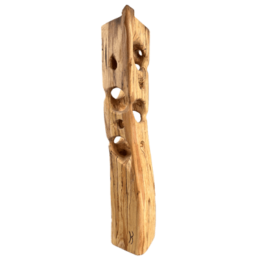 La plupart des sculptures de cette gamme sont en hêtre échauffé. C'est ce hêtre qui a détruit le hangar où nous sculptons, Gael et moi, et par lui nous essayons de transformer la destruction en création !