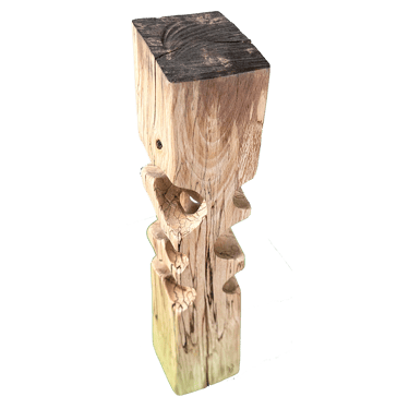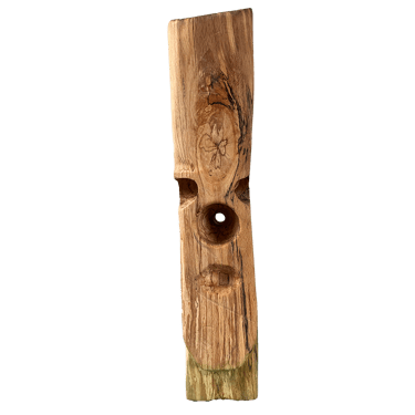 Avec son petit oeil tout en haut, il m'a fait penser à un cyclope, 'kaour' en breton. J'aime aussi le côté penché qui lui donne un caractère instable. Vat-il prendre vie, ou va-t-il rester de bois ?!