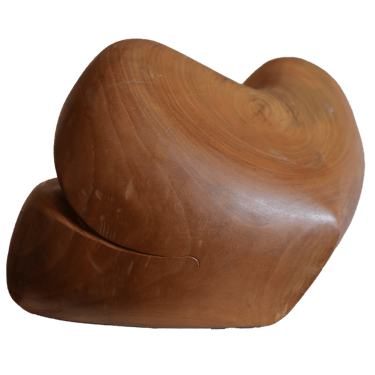 On m'a offert un morceau de merisier coupé un peu bizarrement. Les deux faces étaient biseautées. J'ai eu l'idée d'en faire un cœur peut-être parce que devant mes yeux j'avais le cœur du bois, un bois rouge. Puis en le travaillant j'ai eu l'idée d'en faire un cœur double ('kalon doupl' en breton).