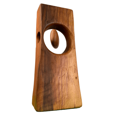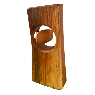 Trois des quatre faces ont été poncées mais la quatrième a été conservée avec les traces des différents outils utilisés. Cela lui apporte une touche rugueuse, proche du bois brut. La pièce centrale est également en merisier.